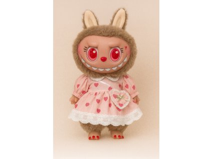 Okouzlující postavička Labubu v růžových krajkových šatech se srdíčky a sladkým detailem v podobě srdcové kabelky. Roztomilá, výrazná a plná osobnosti – ideální pro...
